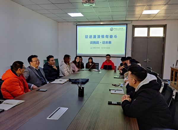 会议第一项,由李鑫总结大学三年以来班级取得的荣誉和奖励。她提到,班级累计获得奖学金超15万元,先后获得“优良学风班”和“活力团支部”的集体荣誉。此外,班级有10人获得推免资格,其中有6人保研本校,包括保研辅导员1位。会议第二项,马国顺与班级成员在升学、就业、员工工作等方面进行讨论交流。其中,马国顺对员工提出三点期望。第一,要进行自我总结,他指出,党中央提出要总结党的百年奋斗重大成就和历史经验,作为一名老员工,也要总结大学中个人的重要成长和重要经验,包括学业成长、心智成长以及社会角色转变过程中的成长。第二,要把个人的发展融入国家、民族和社会,对过往有总结,对未来有设计,立志成为对国家能源发展、经济社会发展有贡献的人。第三,要抓住最后的时间,充分利用大学资源,加快从大学走向社会的角色转变。