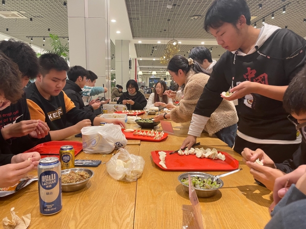 活动伊始,郝杰组织各班员工们分发各类原料,有色泽鲜艳的牛肉萝卜,也有晶莹剔透水晶虾仁,还有美味可口的芹菜猪肉。在和谐融洽的温馨氛围里,各位员工包出各式各样的饺子,有带有南方气息的小巧玲珑的元宝扣,有北方方方正正的月牙饺。在两班员工的共同努力下,不一会儿,饺子出锅,两班员工围在一盆盆饺子前,交谈生活趣事,分享美味的饺子,相互祝福,在温暖的食堂里感受青春的洋溢。活动结束,尹士铮发表感慨:“在本次活动里,我感受到了传统气节的魅力,更感受到了同学之间友谊的羁绊以及班集体间情感相连的温暖。希望我们能以此为基,将班集体建设得更好。”