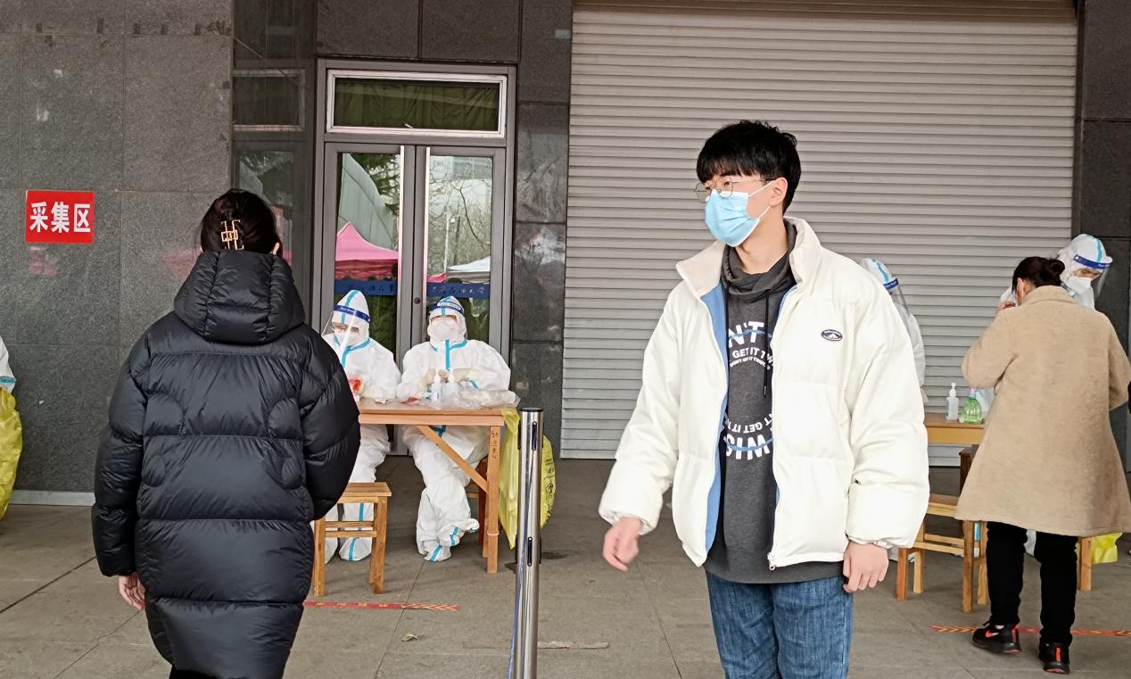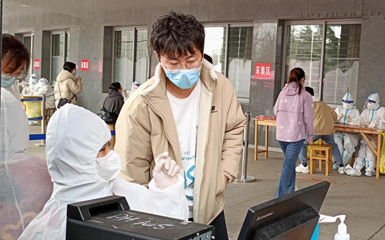“长时间坐在那里不动,到最后一个小时大家手都冻肿了,但没有一个人喊苦喊累!”来自装控2104许志浩参与核酸检测现场信息录入员志愿服务,他表示:“从五点四十五到下午一点,我们都在尽全力完成自己的工作,不敢有一点马虎,这不只是一次志愿服务,更是一份责任!”截至目前,许志浩已累计参与4次核酸检测志愿服务。