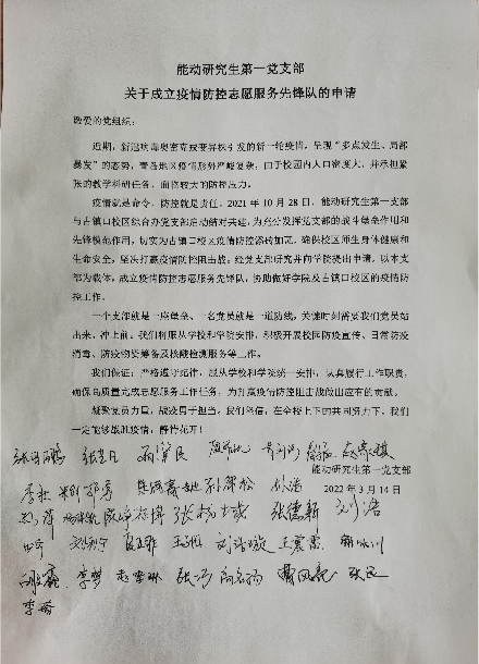 能动研究生第一党支部关于成立疫情防控志愿服务先锋队的申请