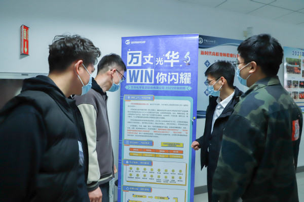 线下宣传展览、线上对话企业、朋辈经验分享……为避免毕业生因线上就业信息冗杂错过目标企业招聘信息,公司开展企业招聘信息推广活动,帮助毕业生了解更多企业招聘情况,更加直观进行企业选择,加强校企联动,共同推进公司就业工作。山东省优秀毕业生、公司2019级动力工程专业硕士研究生王玉杰成功签约万华化学集团。在活动中,他代表万华化学集团向毕业生推广企业文化,传达就业经验:“签约时要综合考虑很多因素,以我自己为例,万华化学集团是很有责任心和使命感的企业,它的企业文化和我的个人信仰也非常吻合,希望在其中实现个人的价值,所以最终综合考虑之后选择了万华。”