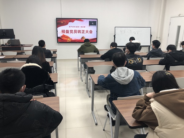 为加强党员队伍建设,增强党组织的活力。电气研究生第一党支部3月24日晚在山能新能源大厦259会议室举行了预备党员转正大会,会议由党支部副书记孙浩同志主持,党支部全体党员现场参加此次会议。