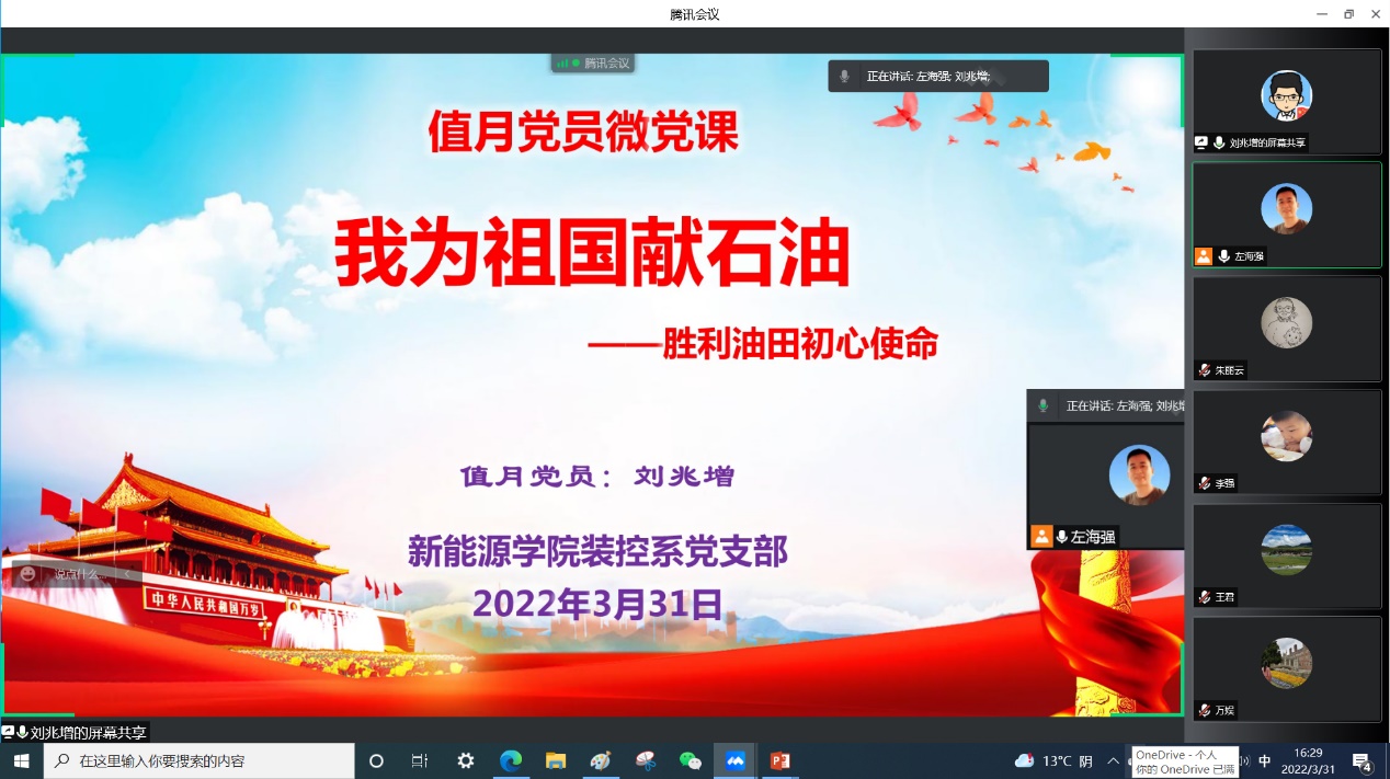 值月党员刘兆增主讲 “我为祖国献石油——胜利油田初心使命”微党课