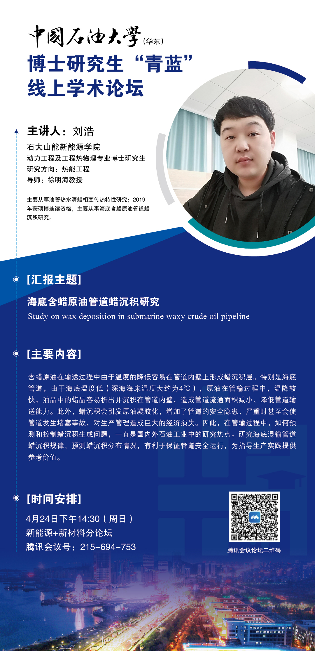中国石油大学博士研究生“青蓝”线上学术论坛-“新能源+新材料”分论坛-刘浩