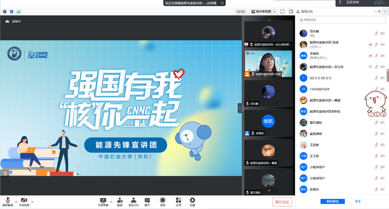 为引导广大青年员工深刻认识碳达峰碳中和政策的重大意义,宣传绿色核能发展理念,5月1日,XC体育能源先锋宣讲团联合青西新区实验初级中学举办第一次“强国有我,核你一起”线上宣讲活动。活动由能源先锋宣讲团团长田鸽主持,能源先锋宣讲团团员李云菲、曹颖主讲,青西新区实验初级中学员工参与。