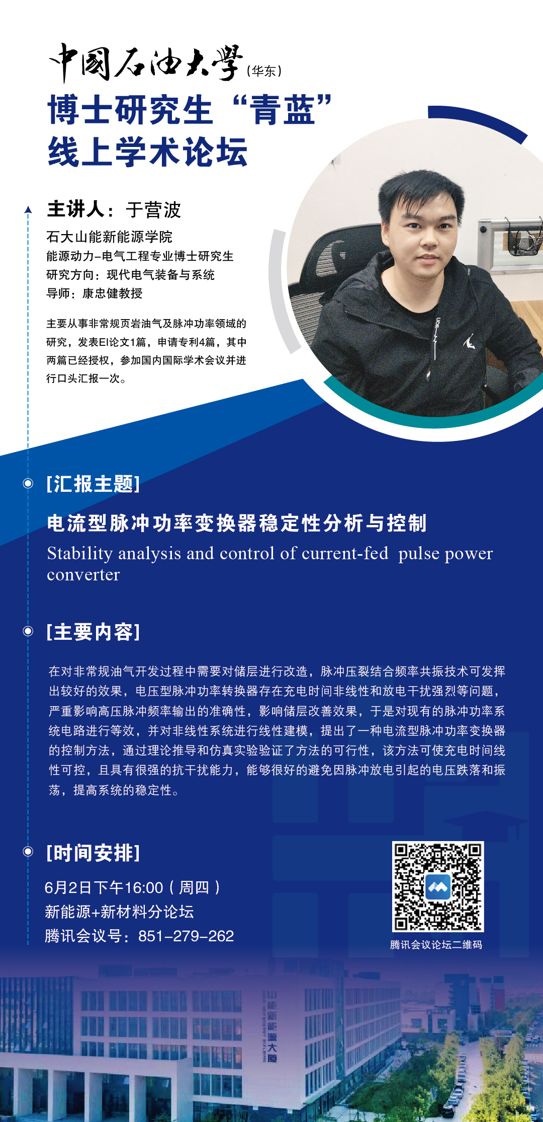 中国石油大学博士研究生“青蓝”线上学术论坛-“新能源+新材料”分论坛-于营波