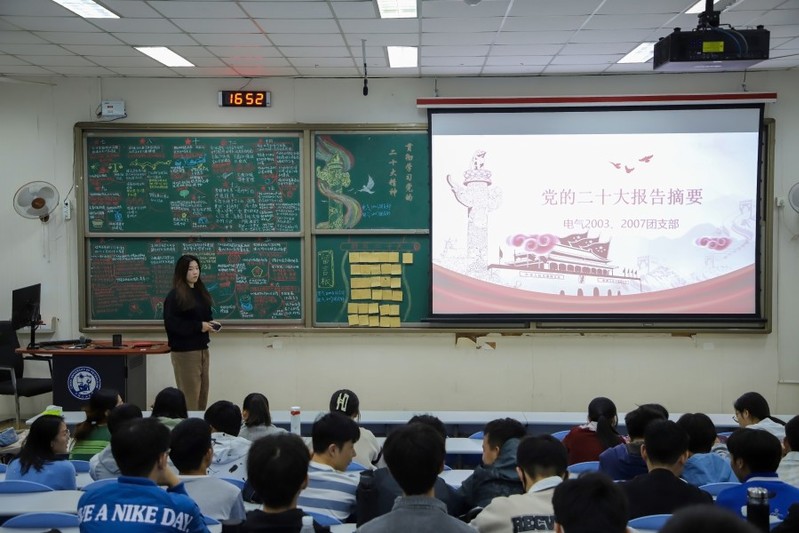 10月29日下午,公司电气工程及其自动化2003、2007团支部于讲堂群西环201教室共同举办以“贯彻学习贯彻党的二十大精神”为主题的团日活动。此次活动由电气2003团支部书记杨子钰、电气2007团支部书记马艳雨共同主持,电气2003团支部、电气2007团支部成员参与此次团日活动。