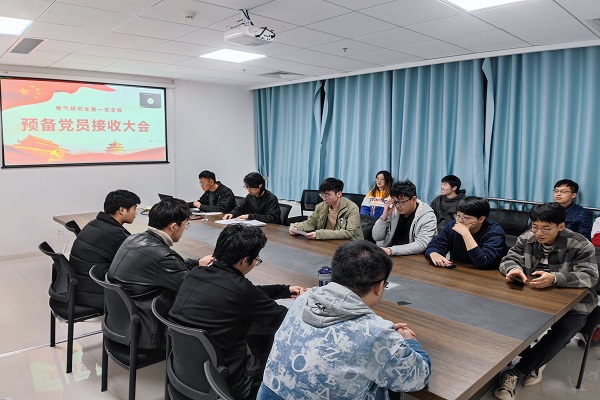 为壮大党员队伍,增强党支部力量,11月29日电气研究生第一党支部在山能新能源大厦575会议室举行了预备党员接收大会,会议由党支部副书记李瑞阳主持,党支部除因事因病请假的两名党员外,其余党员均现场参加此次会议。