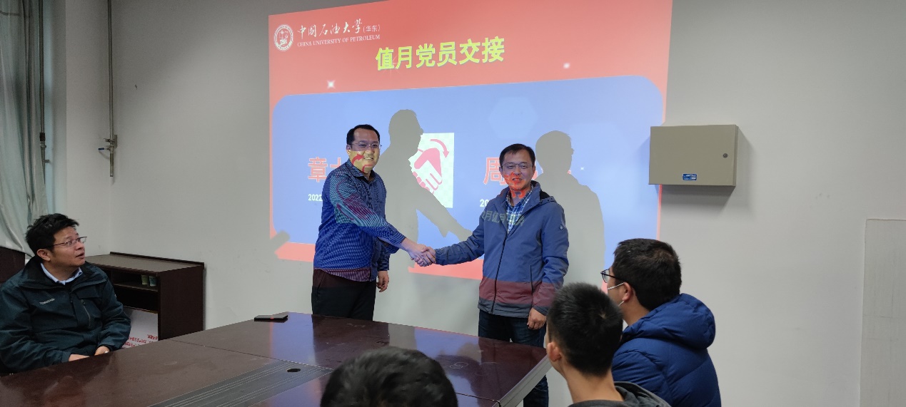 最后,值月党员章大海和周昌静两位老师进行了交接。