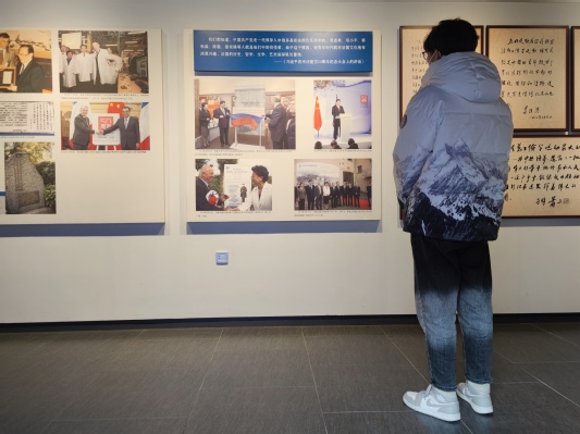 实地参观前,高伯扬通过查询相关书籍与资料,了解到保定留法勤工俭学运动纪念馆成立于1983年,位于河北省保定市金台驿街原保定育德中学旧址,是一所历史专题类博物馆,展线长达120米,现存各类留法勤工俭学运动文物史料。活动伊始,在讲解员的引导下,高伯扬穿过青砖古式门楼来到育德中学的创建人陈幼云先生的祠堂,肃立在堂内正面墙上有陈幼云先生的瓷质遗像前,学习陈幼云先生的英雄事迹。随后,为进一步学习留法勤工俭学运动的历史,高伯扬依次参观“留法俭学会”、“勤工俭学会”的建立照片、“华法教育会”的资料介绍展板、留法勤工俭员工在法国的工作、学习和斗争的实物与图画等。最后,高伯扬感慨到:“留法勤工俭员工在法国兼顾学习、生活、工作的情况下,为争取求学权、生存权发起的进行的三次员工运动都十分不易。这次活动让我们在了解历史的同时,也学习了前辈们的优秀品质。”