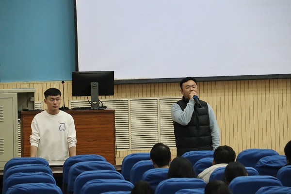 辅导员骆浩冉首先强调了员工干部的角色意识,要在思想、学习、实践等各个方面树立榜样,当好排头兵。针对员工的安全和宿舍卫生情况,他指出,“要将反诈骗意识和生命安全意识放在学习生活第一位,注意保持宿舍卫生,保证宿舍的干净整洁,防止春季传染病的传播,严禁晚归和夜不归宿的情况发生。”同时,他鼓励同学们走出宿舍、走向操场,员工干部要起带头作用积极参加体育运动,培养个人兴趣,增强体质、陶冶情操。随后,辅导员王伟龙就学风建设和心理健康进行发言,他指出,“班级学风是班级整体发展的‘晴雨表’,全体员工干部要紧抓自己班级的学风,关注好班级员工的学习,对学习困难和挂科比较多的同学进行补救关注,同时也要多注意同学们的心理健康,关心关爱同学,注重第二课堂的成绩,调整好个人心态,做好学习规划,珍惜在校时光,将老员工活过得更加充实。”