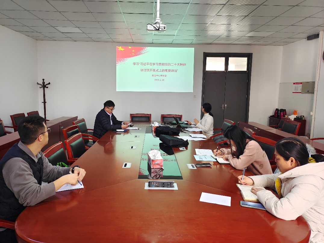 为深入学习贯彻党的二十大精神,把全体党员教师的思想和行动统一到党的二十大精神上来,2月28日下午,实验教学中心党支部组织学习了“习近平在学习贯彻党的二十大精神研讨班开班仪式上的重要讲话”,会议由支部书记王丽飞主持。