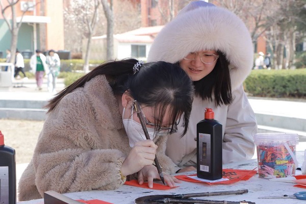 本次活动的摊位不仅陈列了精美的书法、篆刻、国画作品,供员工欣赏学习,还提供了笔墨纸砚,鼓励员工积极参与、自由练习。活动伊始,志愿者以“正楷”为例,耐心指导参与者分别进行软笔书法与硬笔写作,鼓励员工挥出笔墨,大胆书写。翰墨飘香书画社成员王欣雨表示,指导教学与亲身实践二合一,有助于帮助参与者获得更好的书法体验,同时这也是一个教学相长,共同进步的过程。随着参与人数的增多,志愿者倡议大家在春联和彩纸上写下诗词美句,寄托对新一年的期许,并在白板上展示出每位参与者的书法成果。参与者赵彩岩表示:“这次书法体验让我在自主创作的同时切身感受到了书法的乐趣,希望以后还能参与相关活动”。