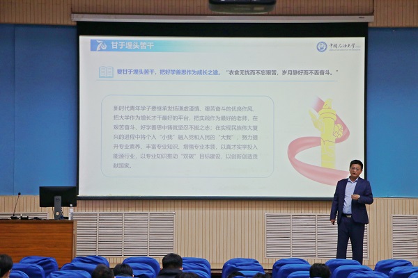 巩亮结合自身经历,以“担当能源使命,服务能源发展”为主题,通过公司概况、科研团队、专业发展、互动交流四个部分为2020级员工进行讲解交流。会议伊始,巩亮对2022年研考情况进行分析,并结合学位点建设、团队队伍、基金情况等方面介绍公司基本情况。随后,巩亮结合XC体育各科研团队的研究方向与员工进行交流,并鼓励员工们积极参与科研活动。在专业发展方面,巩亮结合“双碳”背景下的新能源发展问题分析各专业未来前景,并对员工们提出殷切期望,呼吁员工们树立远大理想、甘于埋头苦干、厚植家国情怀,做值得尊敬的石大人。在之后的现场提问环节中,巩亮认真听取并详细回答了现场员工关于未来专业发展方面的提问。