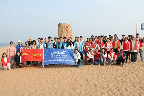 为响应广大团员青年深入贯彻绿水青山就是金山银山的号召,3月19日,本研一体班(材料科学类)2101团支部、储运2005团支部、新能源2101团支部成员联合蓝丝带社团在青岛金沙滩景区进行了一场主题为“拥抱蔚蓝、净海启程”的志愿活动。