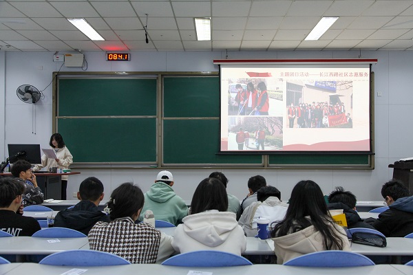 会议伊始,杜心怡介绍团支部自成立以来的情况以及团支部的建设目标和思想培养。随后,杜心怡通过对上一学期工作的总结,列举团支部自成立以来的建设成果、举办过的团日活动、与我院其他团支部一同召开的会议、团员团籍的信息完善、团员组织关系的转接等工作内容。她鼓励团员积极参与第二课堂活动,做到在文体、思想成长、科技创新,社会实践与志愿服务等各方面全面发展。紧接着,由团支部成员填写团支书工作表现测评表格,年级团总支负责人统计数据并进行公示。随后,年级团总支负责人根据测评表格对杜心怡进行点评与总结。最后,杜心怡就存在问题进行反思并做未来规划,她总结道:“接下来我会本着为大家服务的原则,用最好的心态对待,尽力尽责的做好这项工作,也要密切关注本支部成员的思想动态,做好正确的领导。”