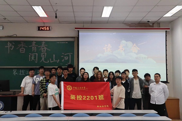 活动伊始,刘学思介绍活动的目的以及安排。随后,刘学思介绍班级各成员所推荐的书籍,例如:《红星照耀中国》《钢铁是怎样炼成的》《宋史▪文天祥传》《活着》等许多书籍作品,并且进行书籍知识快问快答,宣传红军的长征精神、五四运动精神、社会主义核心价值观的意义等中国共产党革命的精神。除此之外,林可怡进行《风会记得一朵花的香》片段内容的朗诵,声情并茂地展现出书籍所带来的魅力,把大家带入到书籍温馨的画面之中。随后,刘学思和李浩共同朗诵诗歌《石油师的旗帜》,慷慨激昂的朗诵体现出70年前毛主席带领八千名石油子弟兵无坚不摧的意志。紧接着,为迎接70周年校庆,刘学思呼吁大家主动学习石油大公司歌,提高对于校史的了解。活动最后,装控2201全体员工分享自己在团日活动中所学到红色精神、五四精神以及对于书籍的感触。