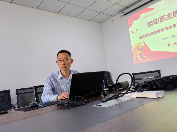 之后,冯洪庆结合主题教育,为大家分享自己的学习体会。他说,认真学习总书记重要讲话精神,在新时代背景下聚焦提高能源与动力工程专业人才培养质量,聚焦解决影响能源安全战略的卡脖子技术难题与科学问题,我们基层教师在教学科研中应该有所作为。