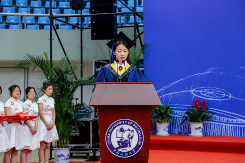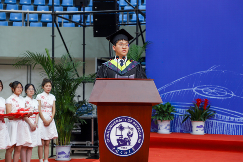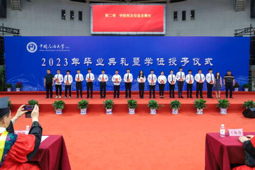 为表达对公司对美好的祝福和深深的不舍,2023届毕业研究生李玥嬛代表全体毕业生向公司送上鲜花,随后李玥嬛、田东峰分别代表毕业研究生和毕业本科生上台发言。李玥嬛谈到,“无论我们身处何方,有何境遇,都应时刻谨记‘惟真惟实’的校训,秉持初心,砥砺奋进,再续华章。我们将用所思所学所为为社会的进步与国家的发展贡献自己的每一寸光芒。”田东峰表达了对母校建校70周年的祝福,同时祝愿所有毕业生学业有为、事业有成,“今年是母校建校70周年,我想借此机会代表所有毕业生,把最美好的祝福送给母校,我们也一定会传承石大精神,在建功立业的广阔舞台上书写自己的人生华章!”