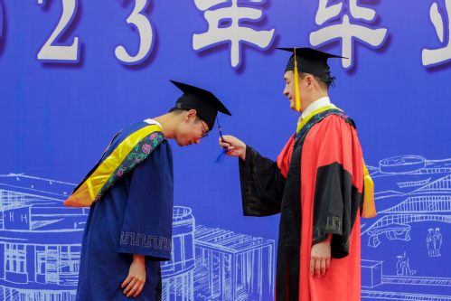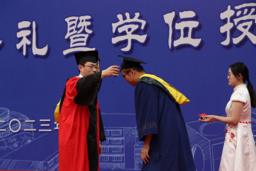 在温馨的歌曲声中,吴明铂、巩亮、仉志华、王振波、林日亿分别为毕业生授予学位。微笑、握手、拨穗、合影,一声声快门,一次次拥抱,定格了2023届新能源学子的毕业美好瞬间。