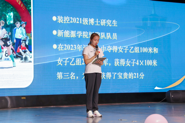 过去一年公司在第十八届青年健身节和公司2023年运动会上分别取得了优秀成绩,羽毛球队和女子排球队在青年健身节中勇夺冠军,男子排球队和女子篮球队双双获得亚军,田径运动员夏睿追平女子100米项目记录,公司再次斩获经理杯。成绩的取得离不开每一位师生运动员的努力,学院短跑队队员、2021级博士研究生夏睿作为优秀运动员代表在发言中表示,十分荣幸能够代表公司在田径场上拼搏,每一次成绩的取得都离不开老师同学的支持。原公司女排队队长、2023届本科生杨涵予在发言中谈到,“夺得女排冠军既是突破又是挑战,感谢公司的培养与肯定,在未来比赛中女排队伍将再接再厉,为公司赢得更多荣誉。”随后穆海涛宣读公司体育表彰决定,马文忠、郭杰、徐光辉分别为在健身节和运动会中表现优异的师生运动员颁发“十佳教工运动员”和“十佳员工运动员”证书。