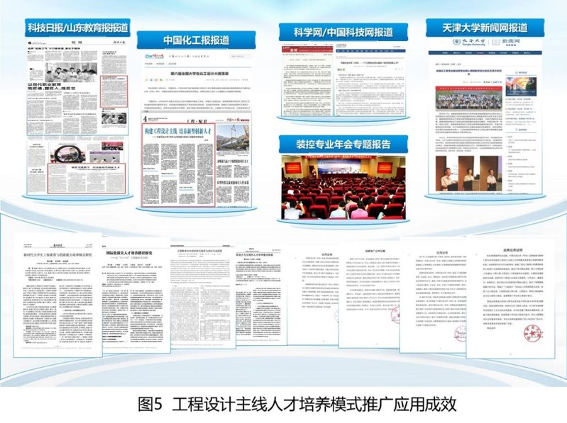 成果实施以来,应用到2012~2022届约1920名本专业员工,并推广到化学工程与工艺、环保设备工程、能源与动力工程等相近专业,培养了一大批优秀工程设计和创新人才。成果被同类院校广泛借鉴,科技日报、中国化工报等媒体多次报道工程设计主线人才培养工作和成效,产生了广泛的社会影响(图2)。