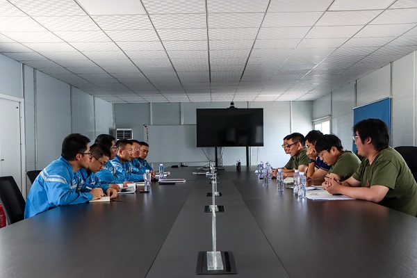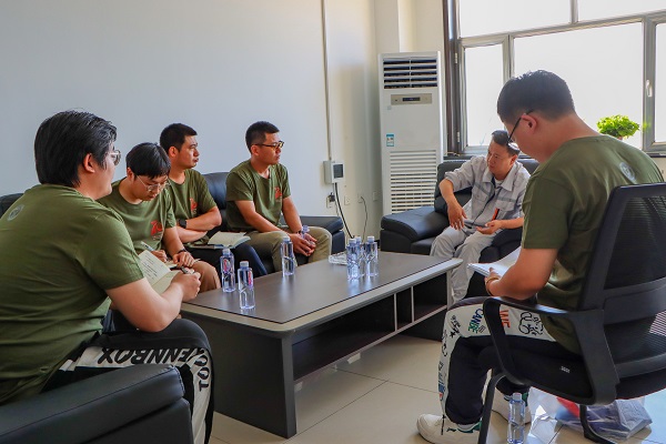 8月15日上午,实践队到达内蒙古鄂尔多斯,参观走访内蒙古润阳悦达新能源科技有限公司,内蒙古润阳悦达新能源科技有限公司总经理、化机97级员工华根节与实践队员们座谈交流。