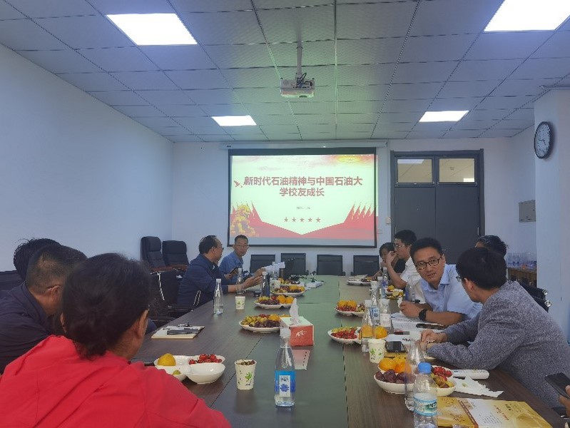 会议第三阶段由系支部书记冯洪庆主持,主题为新时代石油精神与中国石油大学员工成长。会议结合新中国石油工业发展历程,首先学习了石油精神、大庆精神与铁人精神,研讨了新时代石油工业服务国家能源战略、确保国家能源安全的重要作用,最后介绍了中国石油大学培养的一系列杰出人才,并结合本学科老前辈时铭显院士、任瑛教授的事迹,开展了师德师风学习。