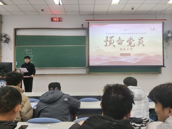 11月30日晚上七时,公司20级能动与新能源本科生党支部于讲堂群西廊101教室召开党员大会,会议由党支部书记孔令剑同志主持,大会根据《中国共产党章程》和《中国共产党发展党员工作细则》要求,主要研究讨论吸收杨岳龙、陈浩宇等五名发展对象为预备党员的问题。
