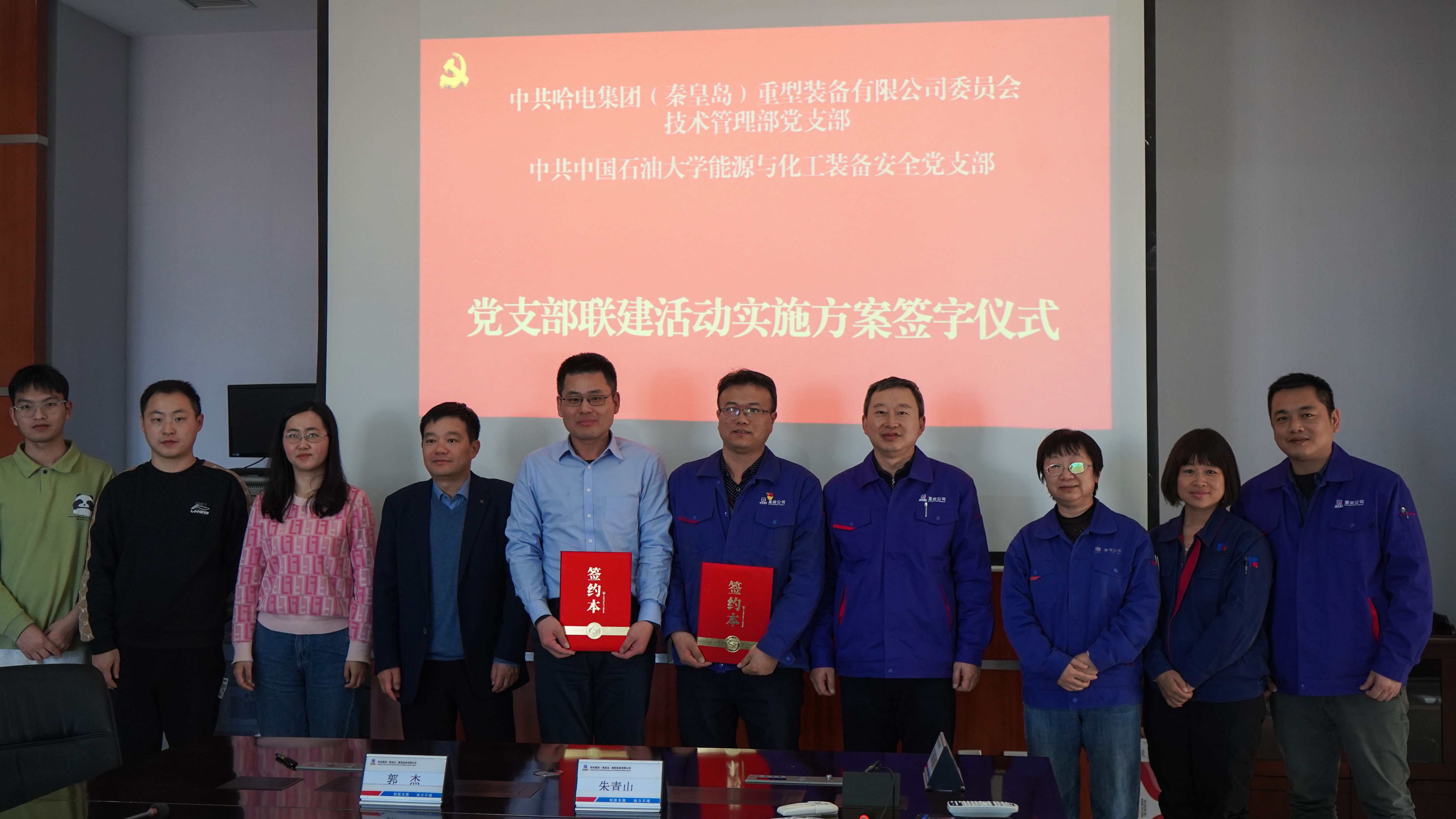 哈电集团(秦皇岛)重型装备有限公司总经理刘立民、副总经理赛鹏、焊接总专业师林海燕、技术管理部党支部书记朱青山与XC体育公司党委常委、实验室管理处处长蒋文春、公司党委副书记郭杰以及双方党支部部分党员共同参加了此次联建活动。