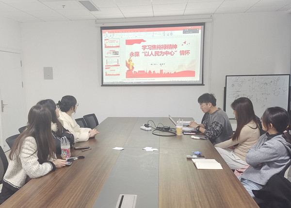 本次学习分享活动由支部第三学习小组负责,主题是学习焦裕禄精神,永葆“以人民为中心”情怀。主讲人臧靖宇首先分享了习近平总书记的发言:“江山就是人民,人民就是江山,中国共产党领导人民打江山、守江山,守的是人民的心。”并以此展开介绍焦裕禄精神。通过视频讲解的方式带领支部党员了解了焦裕禄同志担任兰考县委书记期间,在饱受病痛折磨的情况下,仍然坚持带领全县干部群众与严重的自然灾害进行顽强斗争的感人事迹。焦裕禄深刻践行了党的全心全意为人民服务的宗旨,他对群众的那股亲劲、抓工作的那股韧劲、干事业的那股拼劲铸就了伟大的焦裕禄精神。最后呼吁支部全体党员大力学习和弘扬焦裕禄精神,勇挑重担、埋头苦干,为全面建成社会主义现代化国家而努力奋斗。