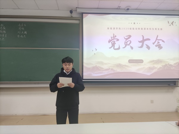 12月8日,公司2020级能动与新能源本科生党支部于南教楼119教室召开党员大会。会议由党支部书记孔令剑同志主持,支部成员参加,大会根据《中国共产党章程》和《中国共产党发展党员工作细则》要求,主要研究讨论了朱标、陈勃旭等九名预备党员的转正问题。