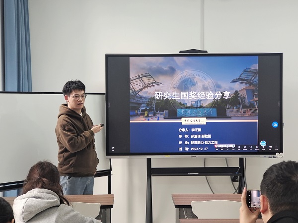 为弘扬孜孜不倦的求学精神,充分发挥优秀研究生的榜样力量,12月30日,XC体育研究生会在新能源大厦269举办优秀成果汇报会暨国奖获得者经验分享会。此次汇报会由XC体育研究生员工会学术实践部韩璐主持,2021级电气工程学术硕士研究生孙浩,动力工程及工程热物理研究生何若松、柳毅博,动力工程研究生李汪情受邀成为此次论坛的汇报嘉宾。