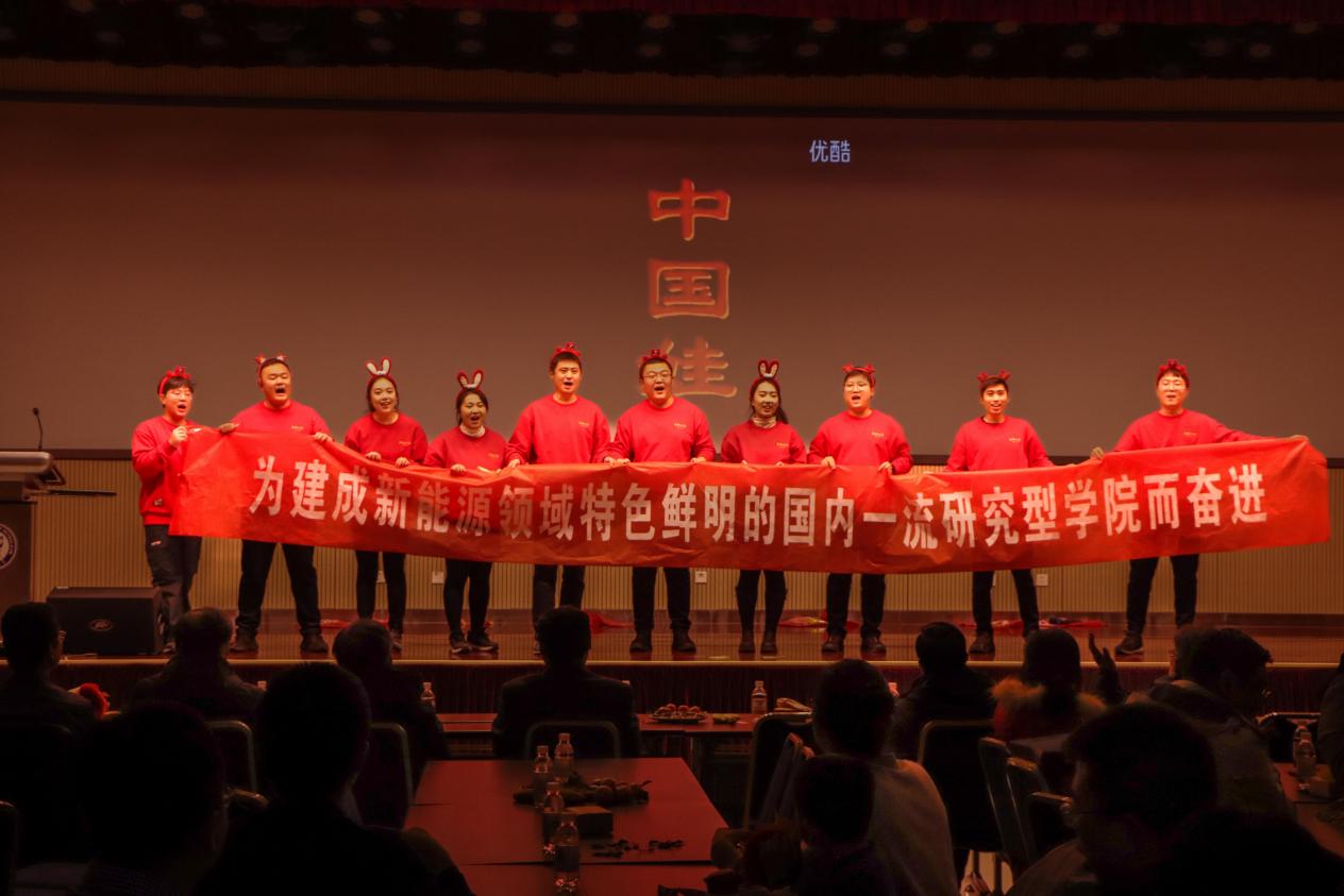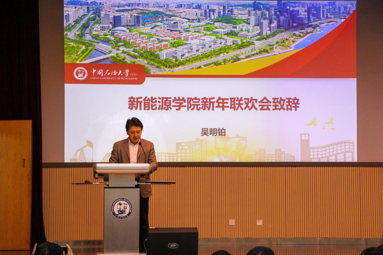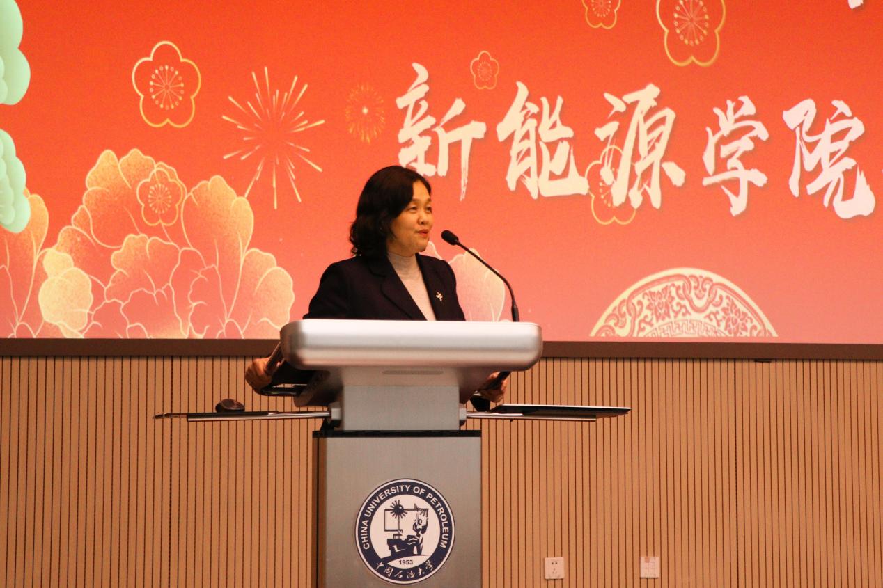 联欢会伊始,常务副经理吴明铂作新年致辞。他总结了公司2023年在人才培养、科技创新、员工工作等方面取得的成就,鼓舞大家在新的一年再接再厉,不断登攀,再创佳绩。随后副董事长戴彩丽致辞,对公司在过去一年所做出成绩表示肯定与祝贺,并希望在新的一年公司提高站位,放宽眼界,增进交流加强合作,为将公司建设为中国特色能源领域世界一流大学贡献力量。