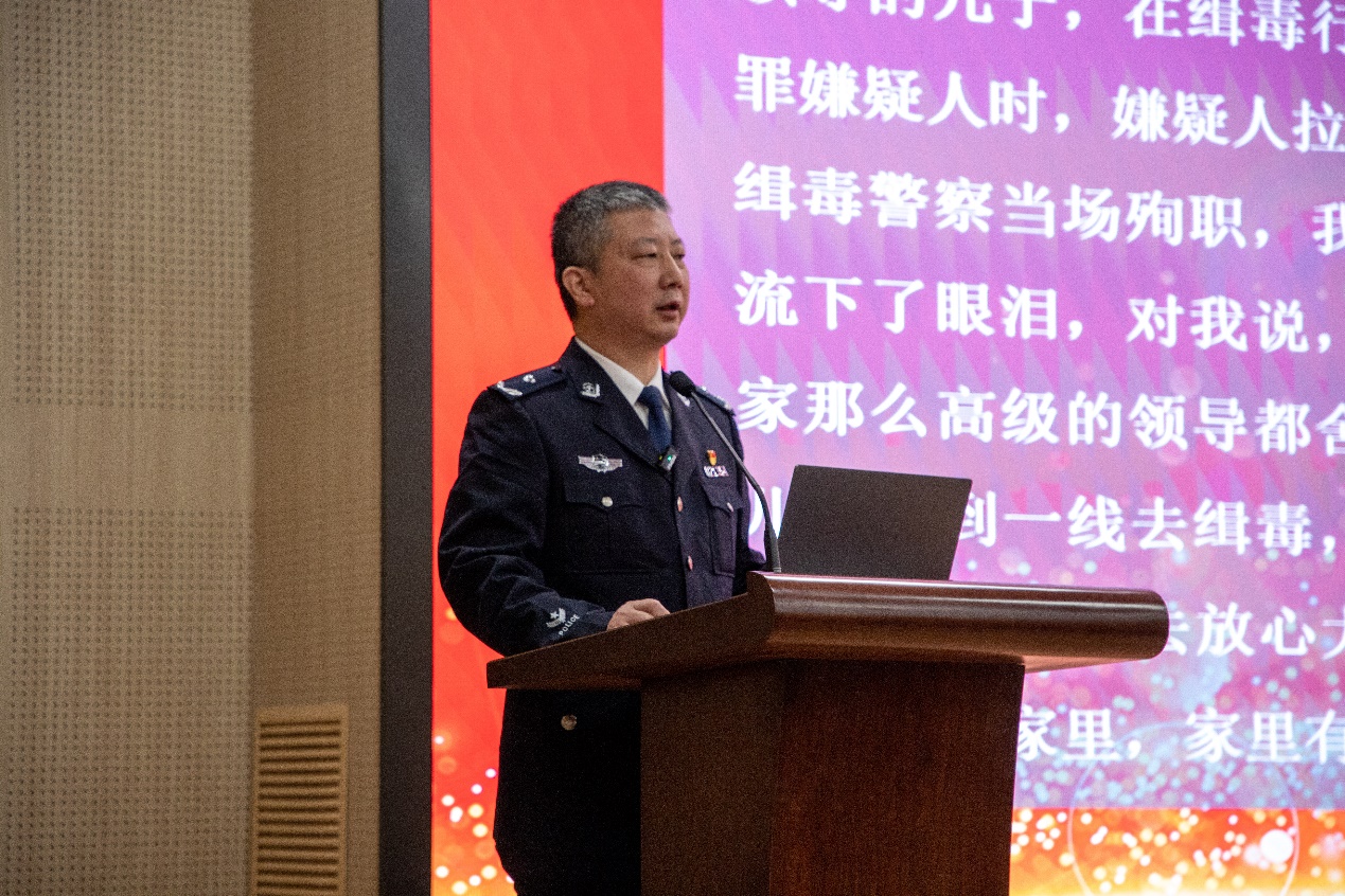 青岛西海岸新区禁毒办主任、开发区分局党委委员、副局长丁伟,新区禁毒办副主任、开发区分局禁毒大队大队长曹友龙,开发区分局二级高级警长王弘山,公司党委书记陈灵泉,公司党委员工工作部副部长张程,公司保卫处副处长苏兴出席;公司党委副书记郭杰主持此次活动。