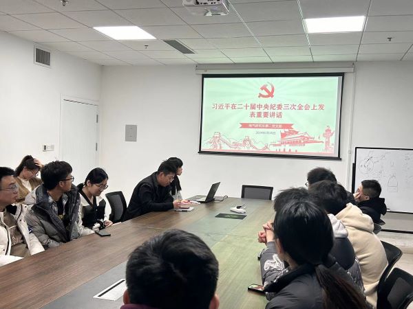 为进一步加强电气工程系研究生党支部的建设,推动党员的思想教育和理论学习,2024年2月28日,我院电气研究生第二党支部在新能源大厦575召开了一次主题党课学习活动,学习习近平总书记在第二十届中央纪委三次全会上的重要讲话。本次党课旨在提高党员的纪律意识和廉洁自律能力,进一步加强党风廉政建设,确保党风正气和干部作风的廉洁底线。