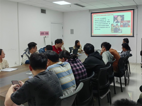 会议由支部书记秦晋一同志主持,郑昊祖同志做主题汇报,支部全体党员和预备党员参加学习。会议伊始,郑昊祖同志首先向党支部全体成员做了“党风廉政建设”的主题汇报,主要介绍了改革开放以来我党反腐败斗争的四个主要阶段,总结了当前党风廉政建设和反腐败斗争的形势,传达了习近平总书记在中央纪委五次全会上,对反腐斗争工作做出的深刻指示。系统论述了反腐败斗争的严峻性、复杂性,强调研究生党员要树立良好的学风和作风,坚决抵制各种不良风气,做到廉洁自律,以实际行动践行党的宗旨。随后,党员们共同观看了“涵养清风正气,争做廉洁青年”主题学习视频,研究生党员们围绕党风廉政建设展开了深入讨论。各位党员同志分享了个人的学习心得,对于如何在学术研究中坚守道德底线,拒绝学术不端行为,以及如何在日常生活中保持廉洁自律进行了交流。大家一致认为,作为一名党员,必须时刻保持清醒的头脑,严于律己,以身作则,为营造风清气正的校园环境贡献力量。会议最后,秦晋一强调,当前我们身处新时代的伟大变革浪潮之中,要把党风廉政建设的要求内化于心,外化于行,以实际行动争做一名合格的研究生党员。