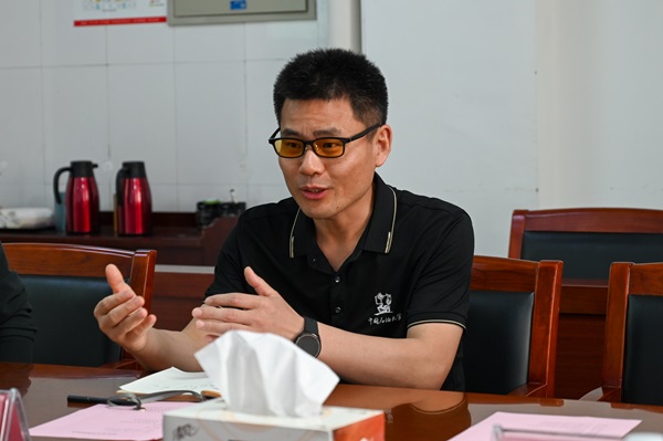 随后,郭杰作出征仪式动员,对实践队成员提出了相关行为规范,进行了相关工作的指导与建议。他从实践队的初心出发,向队员们明确了此次实践活动的任务与目标,提出了“在实践中找一条主线”和“从山东出发、服务于山东”的规划,强调本次社会实践的根本目的是对三北工程区能源企业与环境之间的关系处置以及发展状况进行了解,他结合以往实践队的实践经历做总结发言,讲述了他们在实践中发生的趣事,引导队员们从不同思维方向进行主动思考,读懂能源发展在国家发展中的重大作用,更要明白我们身上背负的责任与担当,并为团队出征授旗,队长王奕栋郑重地接过这面象征团队使命和荣誉的旗帜。