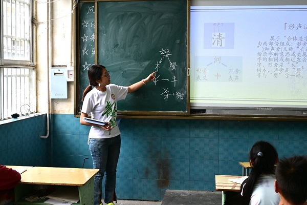 队员马羽在讲解字的组成 石博摄