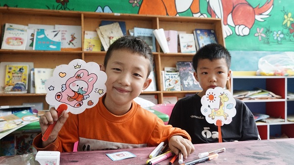 同学在展示自己的画作 王佳倩摄