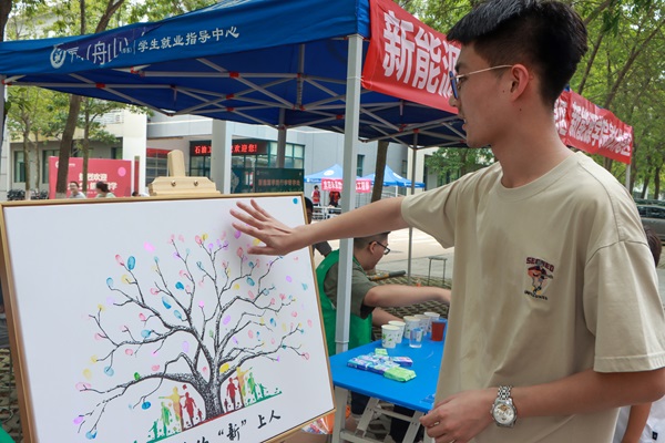 新生在纪念板上按手印 刘妍摄