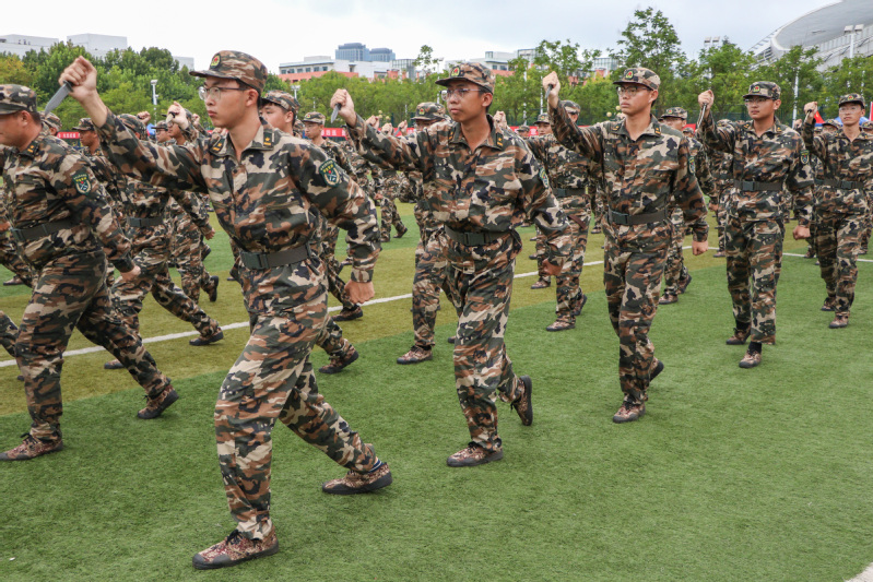 午后,随着阳光变得更加炽热,匕首操训练的号角吹响。在教官的演示下,新生们紧握匕首,跟随指令,一招一式地练习着。匕首在空中划出一道道银色的轨迹,伴随着同学们的汗水与努力,展现出了力量与技巧的完美结合。匕首操训练不仅锻炼了新生们身体协调性和反应速度,还培养出他们在面对挑战时冷静与从容的心境。