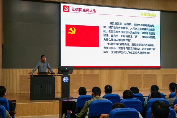 会议伊始,秦政做题为“让信仰点亮人生”的入党启蒙教育讲座。秦政引用党章,阐明党的性质、最高理想、行动指南;通过宣传片,展现中国共产党来自人民、忠诚人民、奉献人民的奋斗历程,让员工知所从来,思所将往,明知所去。秦政向员工们阐释信仰的内涵,要求员工自问入党动机是否纯洁。随后,秦政为员工指导如何写好入党申请书,以及如何在老员工活中做好自身修为。