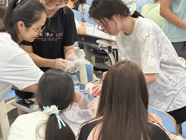 团支部成员制作团扇 鲍佳怡摄