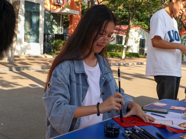 本次活动主要有“书法寄情”与“心愿卡载梦”两部分。活动过程中,员工们拿起毛笔,在特制的宣纸上写下对祖国的深情寄语,表达出自己对祖国最真挚的祝福。此外,活动现场也放置了心愿卡片供员工书写自己的梦想与愿景。这些卡片设计精美,员工们写的既有对祖国悠久历史和灿烂文化的赞美,也有对未来发展的美好憧憬和坚定信心。员工们用真挚的情感和生动的笔触,表达了对祖国的无限热爱和崇高敬意。这些心愿卡片被收集并展示在展板上,吸引众多师生驻足观看,共同感受这份对祖国的热爱与希望。活动在欢欣热烈的氛围中圆满结束。师生们纷纷表示,此次活动不仅让他们感受到了浓厚的节日氛围和爱国情怀的熏陶,更激发了他们为实现祖国繁荣富强而努力奋斗的决心和信心。