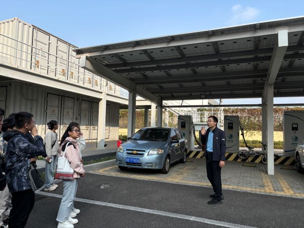 在国家电网青岛中德生态园多能互补综合能源示范站,党员同志们听取站内工作人员的详细介绍,了解了示范站在能源利用方面的先进技术和创新理念。随后,在工作人员的引导下,大家实地参观了示范站的各个功能区域,如光伏系统、太阳能光热复合系统、充电桩系统等。