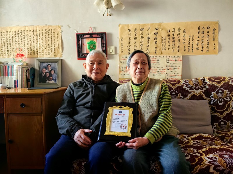 王弥康、沈惠坊夫妇收到捐赠证书(2024年) 郭晓静 摄影