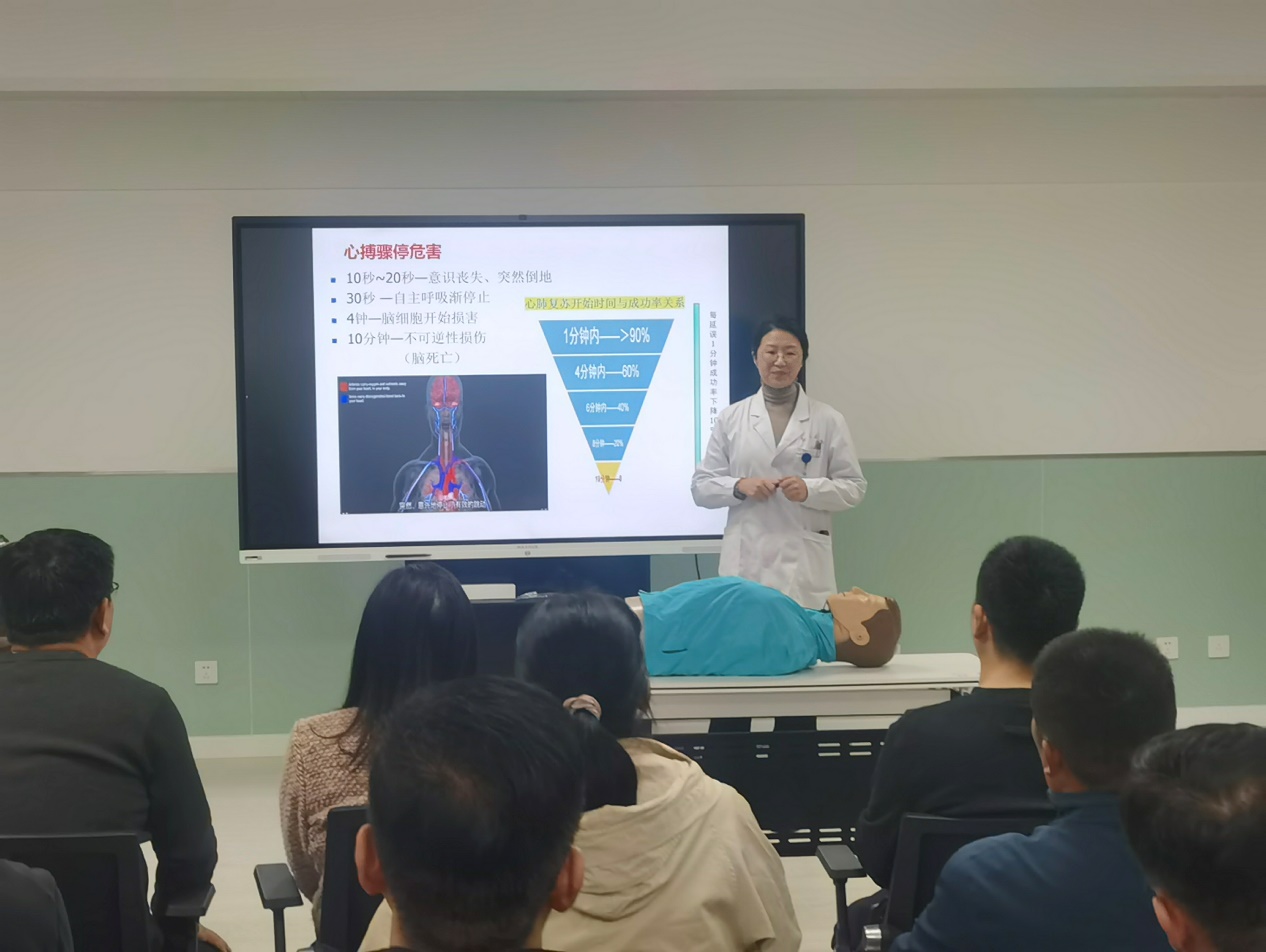 10月25日下午,XC体育党支部与公司保卫处党支部联合开展急救培训活动。此次培训旨在进一步普及心肺复苏知识,提升应对心源性猝死的急救处置能力。培训活动在校医院培训教室举行,由校医院医务人员进行讲解,XC体育党支部与保卫处党支部20余名党员参加培训。