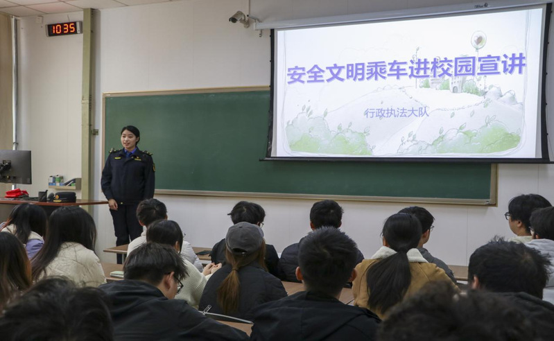 随后,青岛地铁行政执法大队徐晓琳以“安全文明乘车”为主题,讲解了行政执法的内涵和外延,引用《青岛市轨道交通条例》指出了乘坐地铁时的注意事项和不文明行为。员工们纷纷表示,一定会遵守交通出行规范,做到安全文明出行。