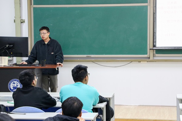 会议伊始,首先由高嘉涵向员工们介绍了综合测评方面的具体细则。之后,高嘉涵在介绍大一学年各个课程的学分占比情况的同时,现身说法,分享了自己的学习方法,他以自己的亲身经历强调了学好高数以及英语的重要性。据悉,高嘉涵于今年直博浙江大学,他向环设员工介绍了推免的排名规则以及各项流程,帮助环设学子对大学四年的规划有了一个清晰的认知。